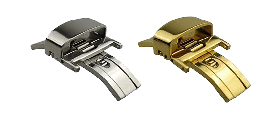 Клипсы для ремешков наручных часов являются одним из разновидностей аксессуаров, позволяющий превратить обычный часовой ремешок в удобный кожаный браслет. Преимущество такого исполнения браслета в носке значительно удобней классической пряжки. Для того что бы снять, достаточно нажать на боковые кнопки клипсы и ремень расстегнут, но остается на руке, так как клипса соединяя два конца ремешка не дает ему рассоединиться, а значит часам упасть. Разные производители часовой индустрии придают своим аксессуарам антуражность и эксклюзив, разнообразием форм, цветовых оттенков, зажимами креплений ремешков, систем закрывания и открывание механизма. Металл для изготовления клипсы выбирается из лучших марок стали не коррозирующих и нейтральных к кожному покрову. Методами полировки поверхность доводится до финишного состояния и на последнем этапе подвергается нанесение цвета методом гальваники PVD. Нередко клипсы для ремешков изготавливаются их драгоценных металлов, золота или платины. Цвет клипсы должен совпадать с цветом корпуса часов или хотя бы гармонировать с ним, а цвет ремешка с циферблатом часов. Механизмы клипсы на открытие и закрытие, различаются на автомат и ручная защелка. Клипса раскладывающаяся на две части, называется раскладушкой, а на три части, бабочка. Автомат открывается нажатием боковых выступающих за ремешок кнопок и клипса сама раскладывается, зависит от устройства. Для открытия механизма ручной защелки, необходимо приложить усилие, бывает что, одна часть фиксирует другую при закрытии. Так же получили популярность клипсы с двойным фиксатором или двойной фиксацией. Основное закрытие механизма, дублирует внешний ручной механизм в виде скобы. Тем самым удваивая надежность фиксации. Такой принцип чаще применяется для стальных браслетов.