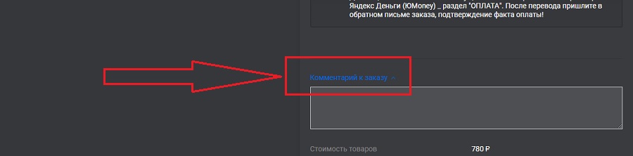 Для открытия поля, щелкните курсором по надписи "Комментарий к заказу".